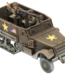 Even though the ‘blitz doughs’ have nicknamed it the ‘purple heart box’, the M3 Half-track is a versatile and resilient machine. Its body offers all-around protection, including an armoured shutter over the radiator and a bulletproof windscreen. The pedestal mount lets the .30-calibre machine-gun—or a .50-cal for the platoon leader's vehicle—fire in any direction.