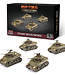includes four plastic Stuart tanks, one Tank Commander Sprue, one Decal Sheet, and two Unit Cards.